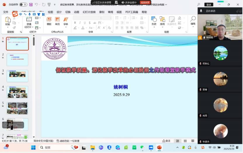为了进一步夯实学系教师的教学基本功,提高综合教学能力和素质,9月29日上午,临床与基础医学院(所)病理生理学系通过腾讯会议举行教学经验报告会,全体教师参加。学系主任姚树桐教授结合自己25年的教学实践和多年教学督导经历,以“保证教学质量、深化教学改革的必经阶段之传统课堂教学模式”为题分享了自己的教学经验和心得,旨在持续提升本课程总体教学质量,实现同质化教学,并为深化教学改革,进一步实践“立德树人、学为中心”教育理念奠定坚实基础。