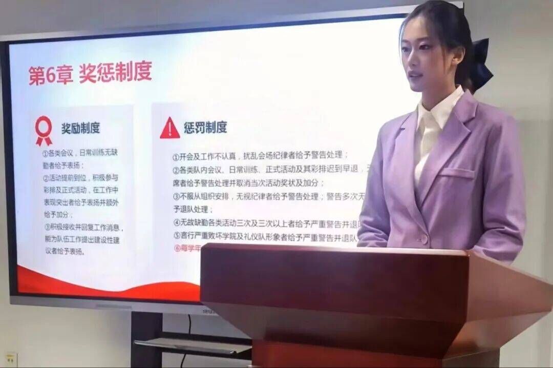 队长王潇艺带领全体队员系统学习了新修订的《礼仪队章程》,围绕队伍宗旨、仪容仪表、组织纪律、团队精神等方面进行了详细解读,强调礼仪队作为院(所)学生组织的重要部分,需做到“内外兼修”,既要注重外在形象规范,也要强化内在品德修养。