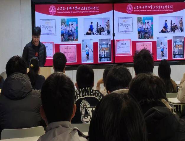 在经验分享环节,已成功保研至首都医科大学普外科的乔欣羽、天津医科大学骨科学的卢泳霖、吉林大学心内科的邵新宇同学,结合自身学习与科研经历,从“学业规划、英语提升、科研入门、竞赛参与、保研策略”五大维度展开系统讲解。他们指出,学业成绩是基石,建议低年级同学重视基础课程,善用教辅资源,提升绩点竞争力;英语能力是关键门槛,六级应力争550分以上,尽早准备雅思/托福,强化口语与文献阅读能力;科研应早进组、早动手,在实验中培养严谨思维与抗挫心态;竞赛应聚焦“互联网+”“挑战杯”等高水平赛事,注重团队协作与表达能力锻炼;保研选择应理性务实,优先考虑对山一大背景友好的院校,提前联系导师,准备多版本自我介绍与专业问题应答。