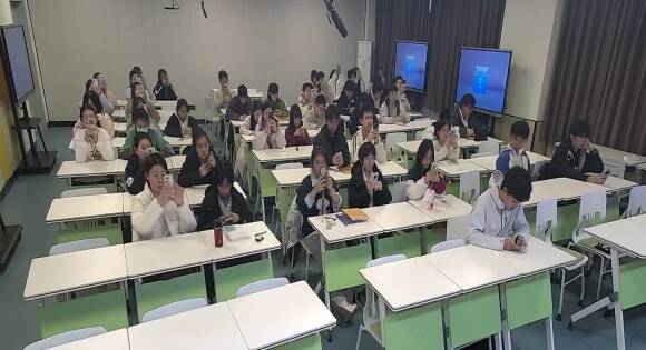 随后进入轻松有趣的“幸运传递”环节。通过人工智能编程实现的随机抽奖系统,多位同学获得定制笔记本、U盘等实用礼品,寓意将“上岸”的好运与努力的精神传递至每一位学弟学妹手中。活动第三部分,全体同学通过超星平台在线学习二十届四中全会精神并完成知识测试。测试成绩优异的同学亦获颁奖品,以资鼓励。
