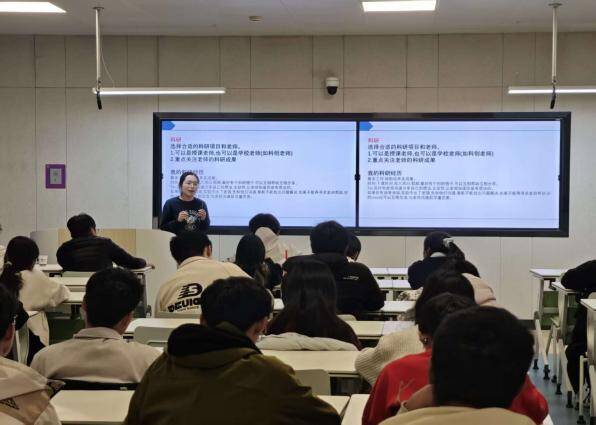 为深入学习贯彻党的二十届四中全会精神,落实校(院)党委关于开展“领航工程”活动的部署要求,激发医学生把握智能时代机遇的使命感和责任感,2025年11月19日晚,医学免疫学教工党支部联合病理学教工党支部与联系班级开展“数智领航,医路相传”领航工程活动。活动邀请了2021级临床医学(卓越)班学生分享了保研经验,2025级临床医学本科8班、9班同学参加了活动。