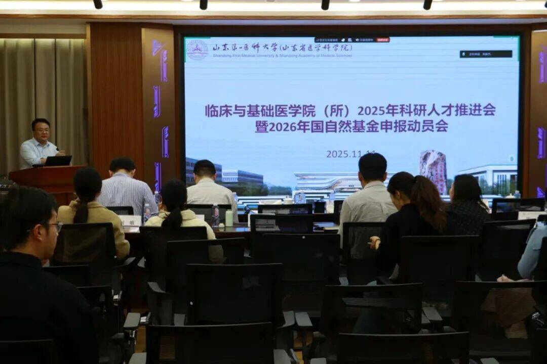 11月11日下午,临床与基础医学院(所)2025年科研人才推进会暨2026年国自然基金申报动员会在基础医学楼A座528报告厅举行,会议由临床与基础医学院(所)副院(所)长付小龙主持,多位国家杰青、优青专家莅临指导,全院科研骨干及相关教师参会。