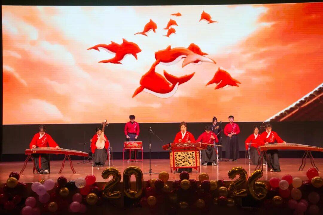 晚会现场华彩绽放,掌声如潮。开场舞《心绪重启》以舒展灵动的舞姿点燃全场;歌曲串烧旋律飞扬,点燃现场激情;《兰亭序》融器乐与舞蹈于一体,典雅悠远,意境绵长;情景朗诵《成为那道明亮的光》真挚深沉,诠释了医者仁心的崇高理想;缝合线乐队带来《火车日记》,展现医学生青春遇上热爱的独特表达;舞蹈《炽色回响》以肢体演绎情感的温度与力量;歌曲《不为谁而作的歌》声音悦耳、娓娓道来;器乐《大鱼》带来新年最温柔的开篇与馈赠;舞台剧《归来》以感人叙事致敬钱学森先生的家国情怀,呼吁大家学习“两弹一星精神”,引发深深共鸣;舞蹈《子不语》以翩然舞姿诉情长;朗诵《沉默的荣耀》铿锵有力,在“许党许国”的誓言中彰显新时代青年的责任与担当;歌曲联唱《我的未来式+像你这样的朋友》昂扬激越,为整场晚会画上了圆满的句号。
