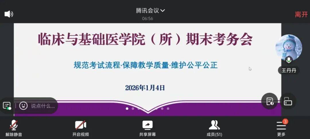 为进一步加强课程期末考试管理,确保考试工作顺利进行,1月4日,临床与基础医学院(所)召开2025-2026学年第一学期期末考务会。学院(所)副院(所)长王丹丹、王尧出席会议。