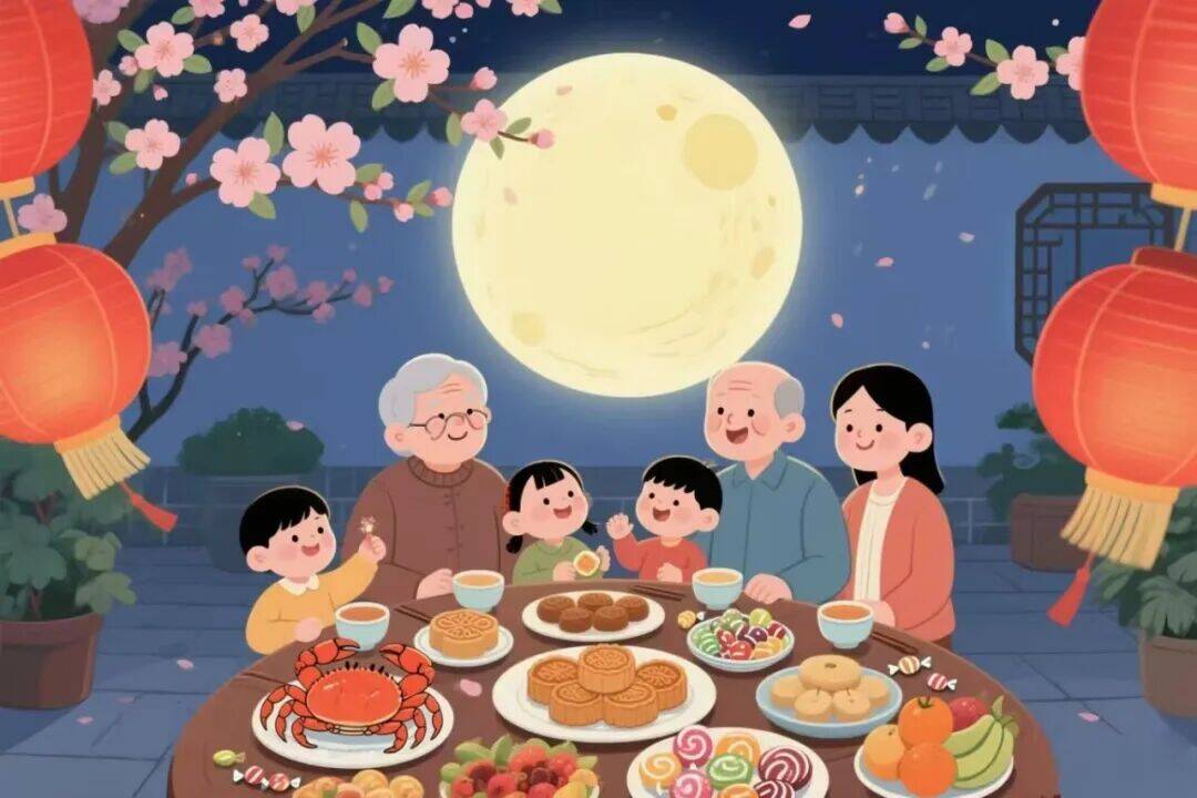 围坐笑谈团圆乐,遥寄情愫对月光。