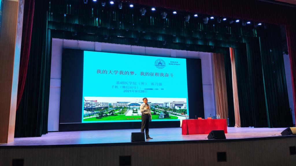 近日,基础医学院(基础医学研究所)党委副书记张乃强为同学们开展新生入学教育第九课。主题为“我的大学我的梦,我的征程我奋斗。”鹰击天风壮,鹏飞海浪春。