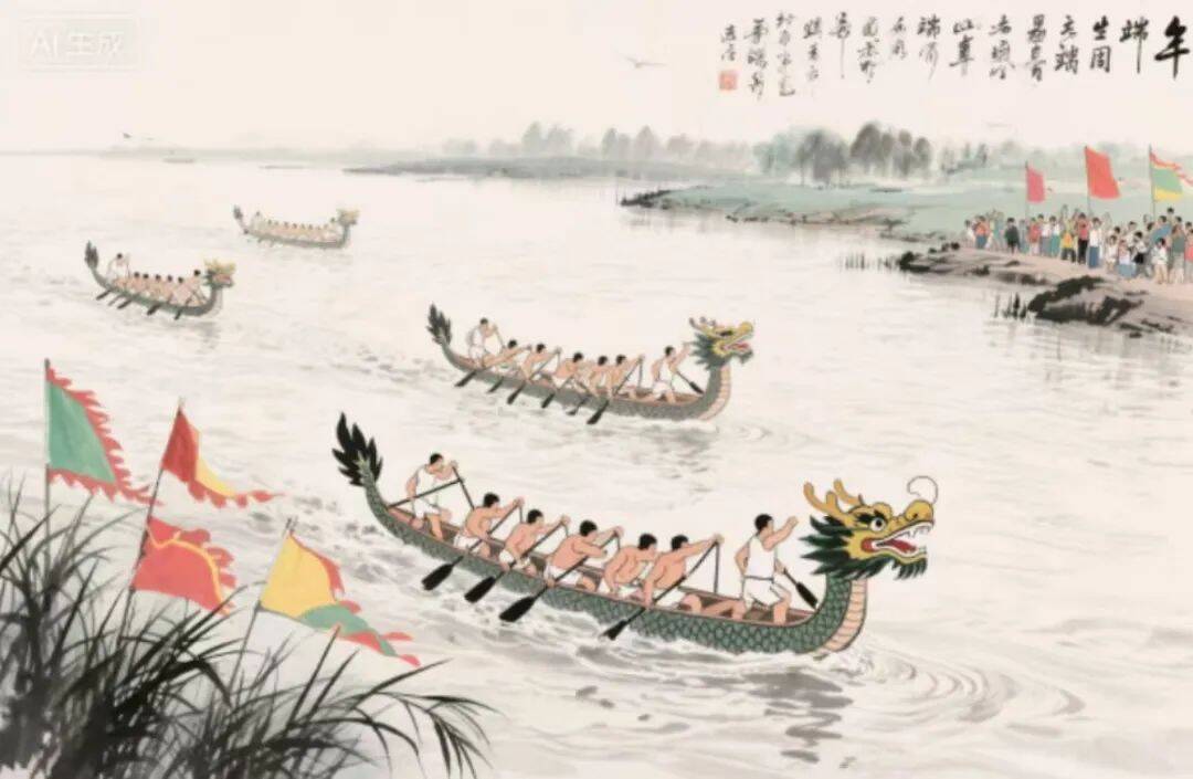 如今,龙舟竞渡依然是端午最激昂的乐章。江面鼓声震天,桨手们整齐划桨,龙舟破浪疾驰,传承着团结奋进的民族精神。