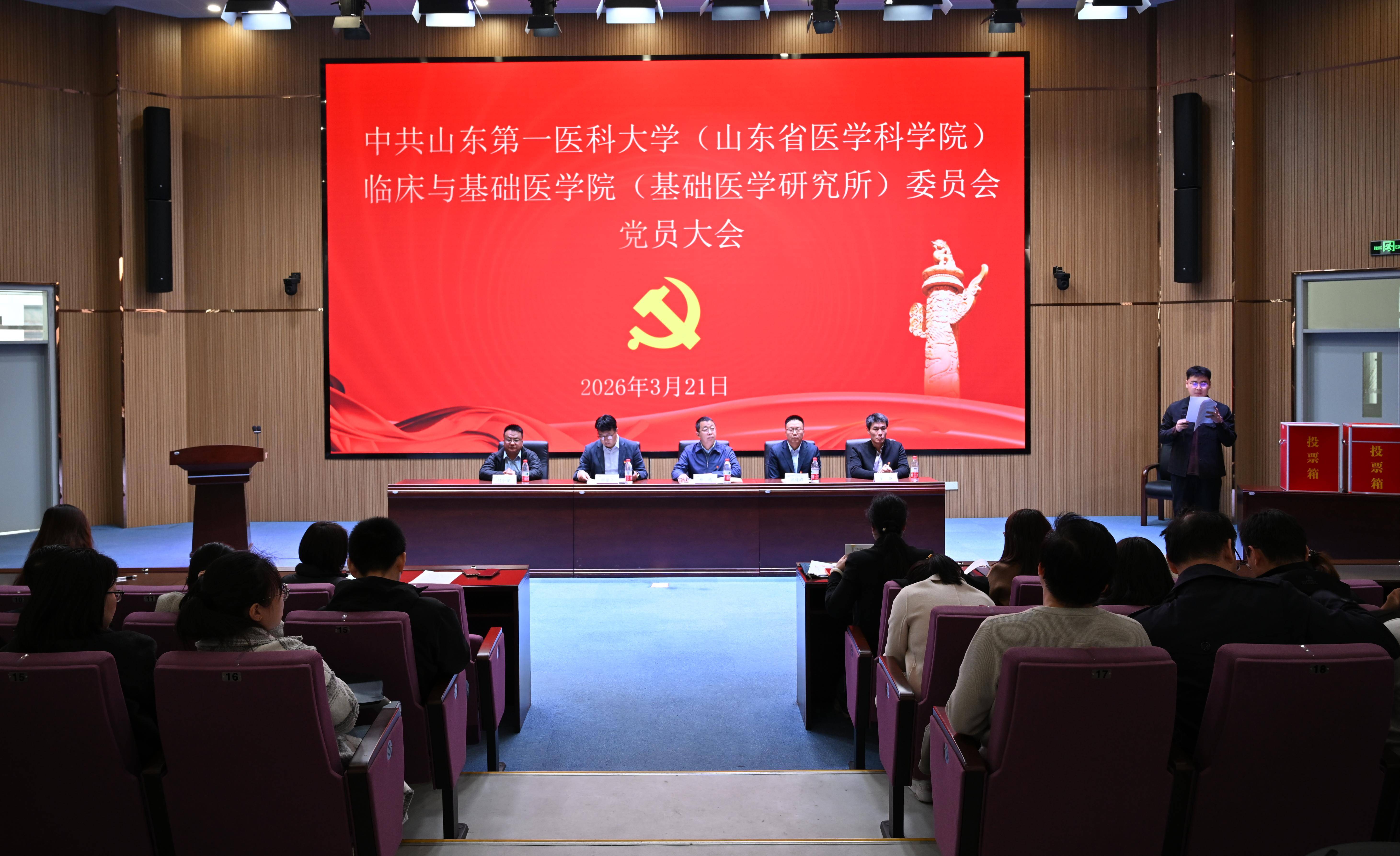 3月21日,中共山东第一医科大学(山东省医学科学院)临床与基础医学院(基础医学研究所)委员会党员大会胜利召开并圆满完成换届选举。大会严格遵循《中国共产党章程》《中国共产党基层组织选举工作条例》规定,在校(院)党委指导下,选举产生新一届学院党委领导班子,为学院(所)高质量发展筑牢政治根基。